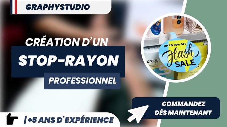 En tant que graphiste diplômé et spécialisé dans les supports publicitaires et PLV, je vous propose un service complet pour la création de votre stop-rayon professionnel.