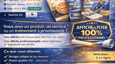 👋 Bonjour, je suis Garba Abdoul, designer graphique spécialisé en communication visuelle professionnelle. 🎨 Je vous aide à développer votre image avec : ✔ Flyers & Affiches publicitaires ✔ Branding complet ✔ Designs réseaux sociaux professionnels 🚀 Mon objectif : vous aider à attirer plus de clients grâce à des visuels modernes et impactants. ✅ Travail sérieux ✅ Communication rapide ✅ Respect des délais ✅ Satisfaction client prioritaire Prêt à booster votre image ? Contactez-moi maintenant.