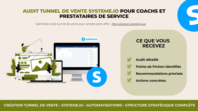 Je vais auditer votre tunnel de vente sur systeme io et vous donner un plan daction