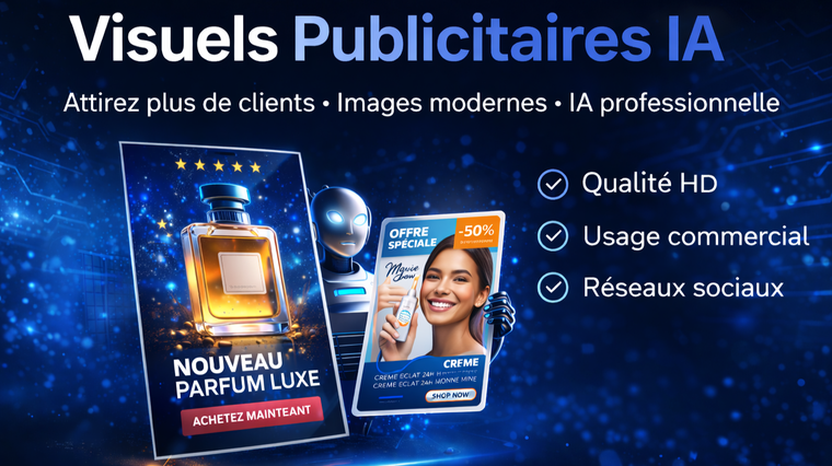 Passez commande maintenant et obtenez des visuels publicitaires IA impactants et professionnels, spécialement conçus pour convertir vos visiteurs en clients.