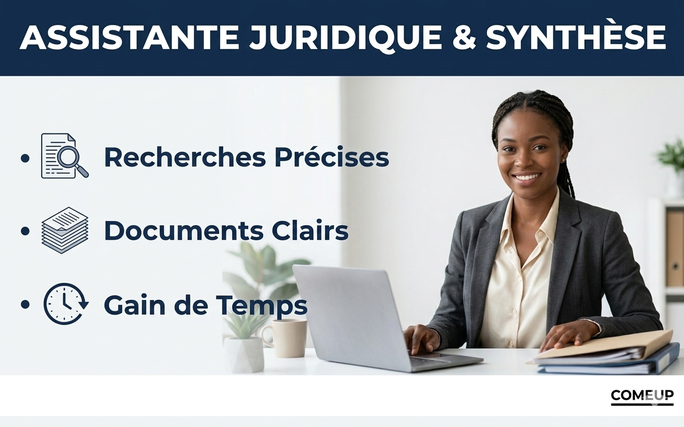 je transforme vos documents complexes en synthèses claires et exploitables. Que vous soyez un entrepreneur débordé ou un particulier face à une procédure, je suis l'alliée qu'il vous faut pour gagner du temps et de la sérénité. Confiez-moi vos recherches, je vous livre la précision.