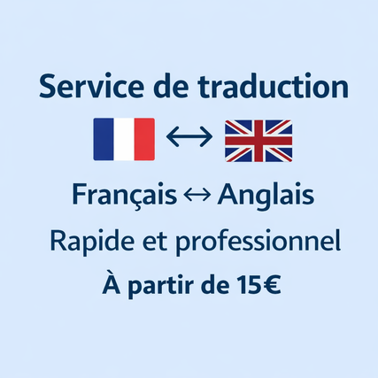 Bonjour, Je propose un service de traduction manuelle et soignée de vos textes de l’anglais vers le français (ou inversement). ✔ Traduction 100% humaine ✔ Respect du sens et du contexte ✔ Livraison rapide ✔ Communication sérieuse Je peux traduire : – Articles – Documents – Emails – CV – Textes généraux N’hésitez pas à me contacter avant de commander.