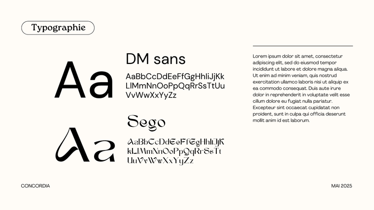 - + Charte graphique complète : codes couleurs, typographies, règles d'utilisation.
