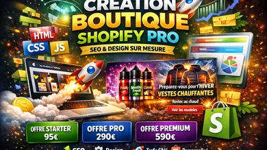 🚀 Expert Shopify | Création & refonte de boutiques e-commerce performantes Vous souhaitez une boutique Shopify moderne, rapide et optimisée pour convertir ? Je vous accompagne dans la création complète ou la refonte professionnelle de votre boutique, avec une approche stratégique axée sur le design, la performance et l’expérience utilisateur. 🎯 MON OBJECTIF : Concevoir une boutique claire, moderne et prête à générer des résultats dès sa mise en ligne. ✨ MES SERVICES SHOPIFY : 🛒 Création complète de boutique clé en main 🔄 Refonte complète de boutiques Shopify existantes 🎨 Design UX/UI moderne et personnalisé 💻 Intégration & personnalisation HTML, CSS et JavaScript 🔎 Optimisation SEO et structure e-commerce efficace 🖼️ Création d’images hero, visuels et diaporamas d’accueil 📱 Optimisation mobile & amélioration des performances 🎓 Formation pour gérer votre boutique en toute autonomie 💼 Une approche complète : technique, graphique et stratégique pour construire une boutique cohérente, professionnelle et orientée conversion. ⭐ POURQUOI TRAVAILLER AVEC MOI ? ✔️ Design moderne et impactant ✔️ Refonte propre sans perdre l’identité existante ✔️ Communication simple et efficace ✔️ Vision e-commerce centrée résultats 🔥 Que vous lanciez votre première boutique ou que vous souhaitiez moderniser un site déjà en ligne, je vous aide à créer une présence Shopify solide et professionnelle.