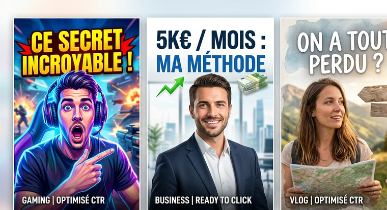 Je ne crée pas des miniatures "jolies". Je crée des miniatures stratégiques, construites autour de ce qui pousse psychologiquement au clic :