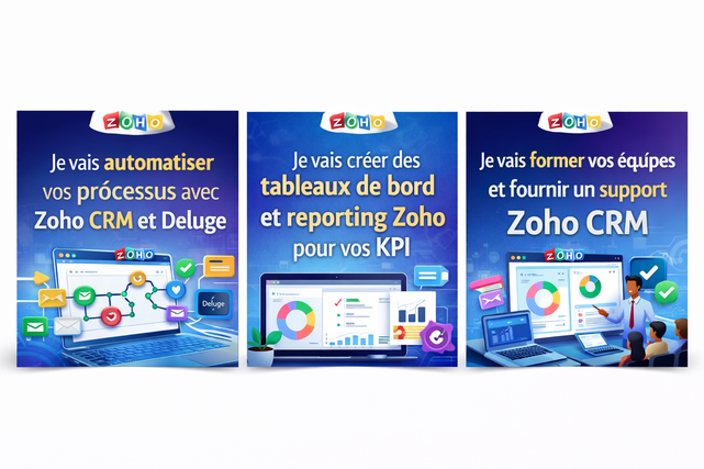 En tant que développeur fullstack avec 8+ ans d’expérience et expert Zoho, j’utilise Deluge et les outils natifs Zoho pour créer vos workflows, automatiser les emails, tâches et notifications, et connecter vos modules CRM à d’autres applications si nécessaire.