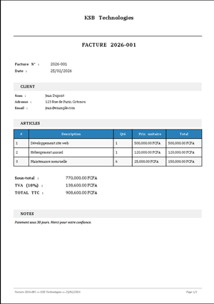 - Design Premium : Mise en page avancée (Colonnes, Filigranes, Pieds de page dynamiques).