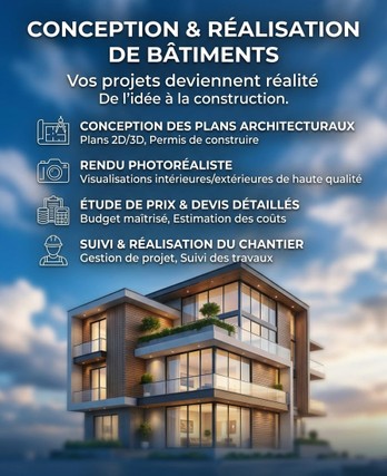 Je suis là pour vous offrir mes services à un prix très forfaitaire : la réalisation de projets de construction et son suivi.