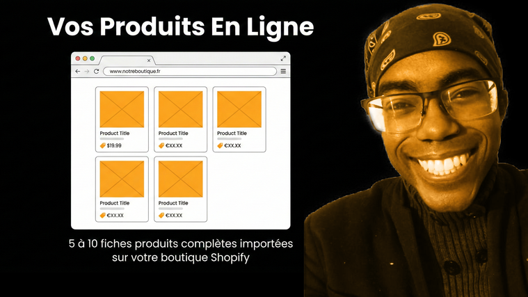 Commandez maintenant et recevez vos produits importés et configurés sur Shopify en 2 jours. Boutique prête à vendre, fiches produits soignées, variantes et collections bien organisées. Transmettez-moi vos infos et je m'occupe du reste !