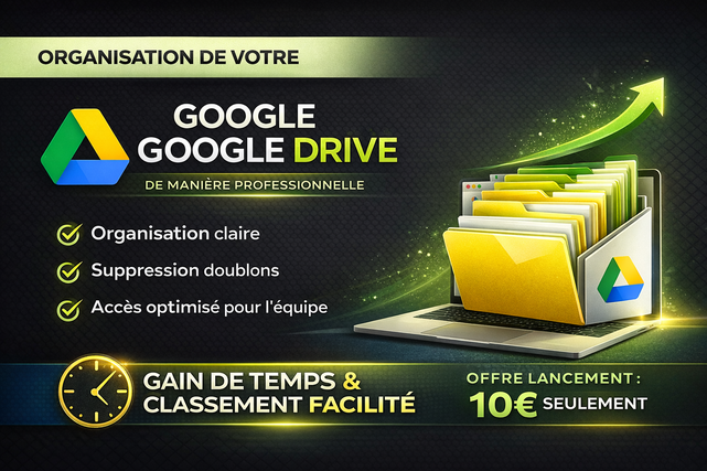 Je vous propose un service complet et professionnel pour organiser, structurer et optimiser votre Google Drive, afin de vous faire gagner du temps et travailler plus efficacement.
