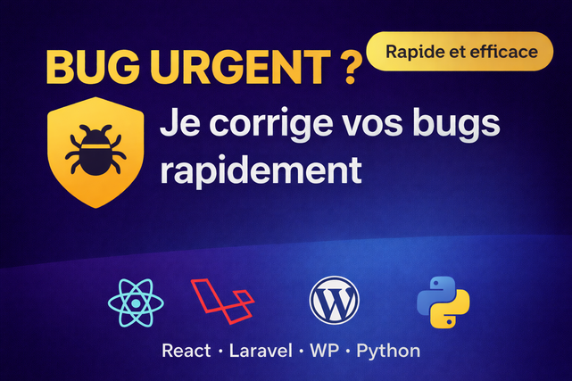 Développeur web et mobile spécialisé en correction de bugs et maintenance, j’interviens sur React, Laravel, WordPress, PHP, Python Django et Flutter. J’analyse précisément la cause du problème, je corrige proprement le code et je vérifie que tout fonctionne avant livraison.