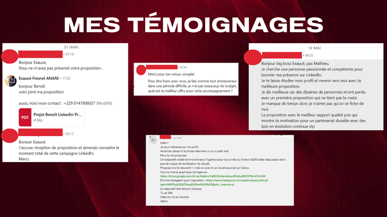 Je m'appelle Exaucé Fresnel ANANI, Community Manager et Stratège LinkedIn avec 1 an d'expérience et 5 clients satisfaits à ce jour. Ce qui peut sembler modeste en chiffres cache en réalité quelque chose de bien plus significatif : 5 accompagnements menés avec une implication totale, une rigueur constante et des résultats concrets pour chaque client suivi.