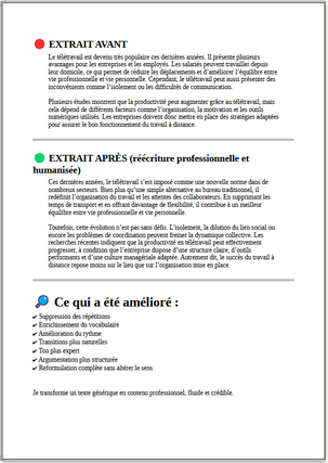 Vous recevrez une version reformulée prête à utiliser.