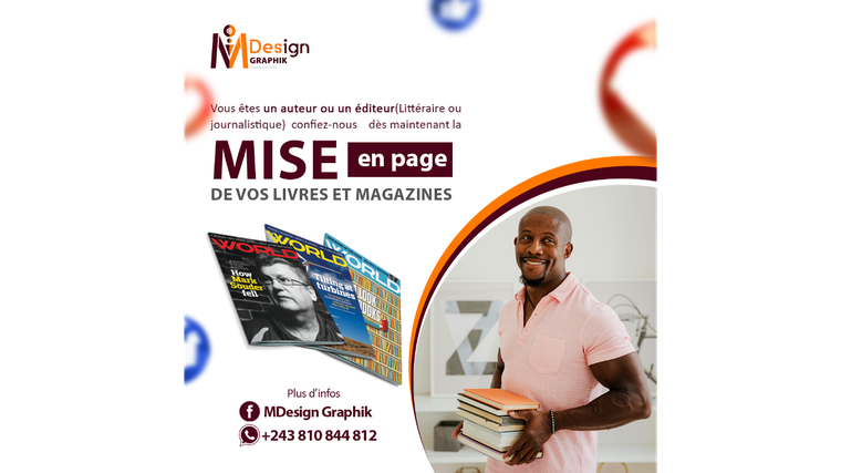 Je suis Merdi WANKEBUSUA, maquettiste éditorial et graphiste designer spécialisé dans la mise en page professionnelle d’ouvrages religieux, spirituels et développement personnel. J’accompagne auteurs, pasteurs et organisations dans la transformation de leurs manuscrits en livres élégants, structurés et prêts pour l’impression ou l’autoédition. ✔ Structuration complète du manuscrit ✔ Mise en page professionnelle (normes éditoriales) ✔ Table des matières automatique ✔ Fichiers optimisés pour impression ✔ Respect des standards typographiques Je travaille avec des clients en Afrique et en Amérique du Nord. Disponible pour toute collaboration à distance. Je suis aussi spécialisé dans la création des logos professionnels, affiches publicitaires, carte des contacts, portrait digital, sites internet Wordpress et tant d'autres, avec une expérience de huit ans.