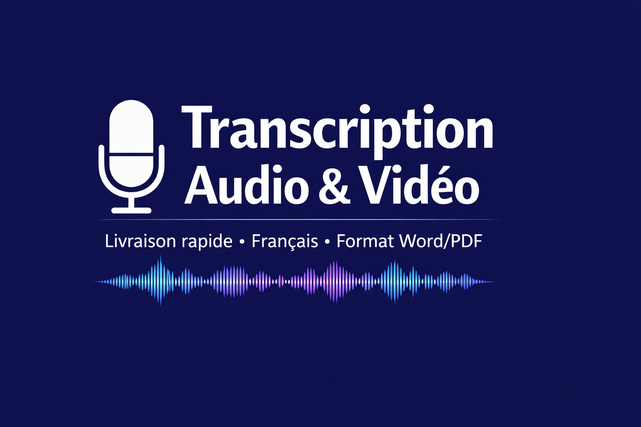Bonjour ! Je suis transcripteur freelance, francophone, disponible pour retranscrire vos fichiers audio et vidéo en texte clair et soigné. Je suis rigoureux, attentif aux détails et je prends le temps de relire chaque transcription avant de la livrer. La confidentialité de vos fichiers est pour moi une priorité absolue. Que vous soyez podcasteur, entrepreneur, étudiant, avocat ou professionnel de santé, je m'adapte à vos besoins et je communique clairement à chaque étape. Disponible rapidement, je réponds à tous les messages en moins d'une heure. N'hésitez pas à me contacter, je serai ravi de vous aider ! 😊