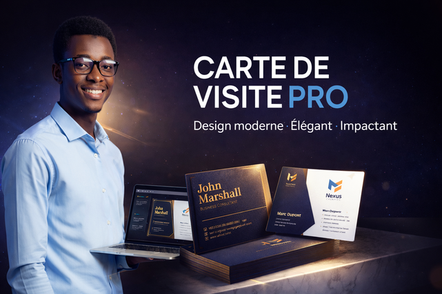 Je suis Kémo Keïta, graphiste spécialisé dans la création de cartes de visite, et mon objectif est de vous offrir un design sur mesure qui véhicule l’image de votre entreprise avec professionnalisme et impact.
