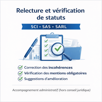 Je vous propose une relecture complète de vos statuts afin d’identifier les incohérences ou les éléments pouvant poser problème lors de l’immatriculation.