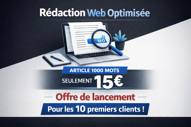 ~un article optimisé de 1000 mots pour 17,61 $US~, valable pour **les 10 premières commandes**.