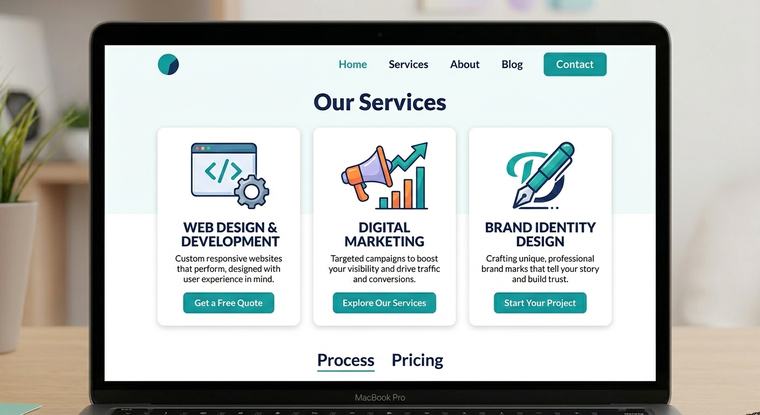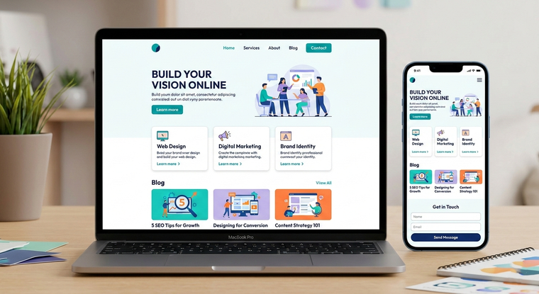 Inclut : accueil, services, contact, blog, design pro et contenu optimisé.