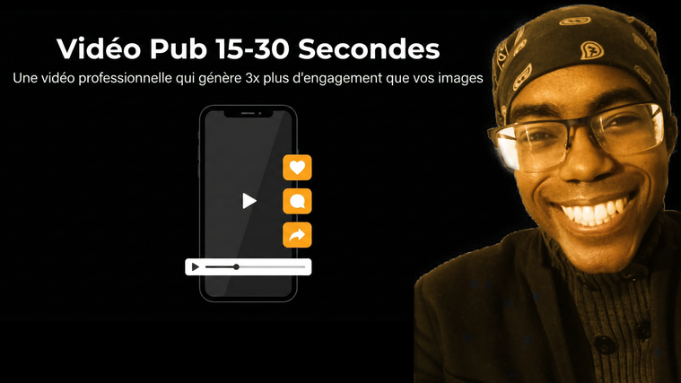 Une vidéo publicitaire efficace de 15-30 secondes, ce n'est pas un court-métrage. C'est une séquence courte, rythmée, avec une accroche qui capte en 3 secondes, un message clair, et un appel à l'action. Elle peut être montée à partir de vos photos existantes, de clips courts pris au smartphone, de texte animé et de musique — et elle battra vos images statiques 9 fois sur 10.