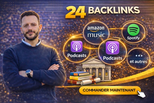 Je vais créer 24 backlinks depuis des plateformes podcasts (Apple/Spotify/Amazon) 13 services