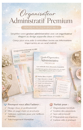 J’ai également créé ce guide pratique pour permettre à chacun d’organiser simplement son classeur administratif et retrouver facilement ses documents importants.