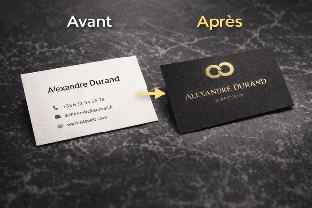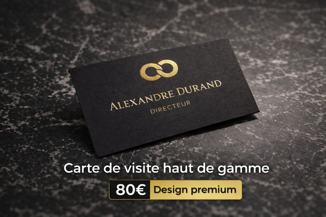 Je crée des cartes de visite premium destinées aux professionnels exigeants qui veulent affirmer leur positionnement.