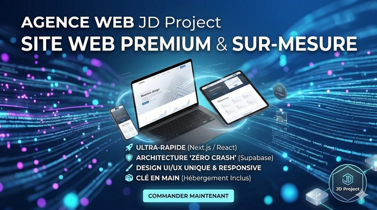 Chez JD Project, nous ne nous contentons pas de créer des sites web : nous concevons des infrastructures numériques de haute précision et des écosystèmes générateurs de revenus. Nous fusionnons l'architecture logicielle avancée avec une vision business stratégique pour bâtir des solutions qui ne sont pas seulement esthétiques, mais technologiquement supérieures. Nos Piliers d'Excellence Architecture & Software : Nous développons des structures logicielles robustes, scalables et sécurisées, capables de soutenir les ambitions les plus complexes. Ingénierie de Conversion : Grâce à une maîtrise approfondie de la psychologie de conversion, nous transformons chaque plateforme en une machine de vente optimisée. Design Premium & UX : Nous allions un positionnement stratégique à une expérience utilisateur fluide pour inspirer une confiance immédiate et durable. Accélération Business : Votre présence en ligne devient un actif stratégique, conçu pour engager vos visiteurs et transformer votre croissance en résultat tangible. Notre philosophie : Transformer la complexité technique en une expérience utilisateur simple, élégante et ultra-performante. Construisons l'infrastructure de votre succès. JD Project transforme votre vision en un puissant levier de croissance. Passons de la simple présence en ligne à la domination de votre marché.