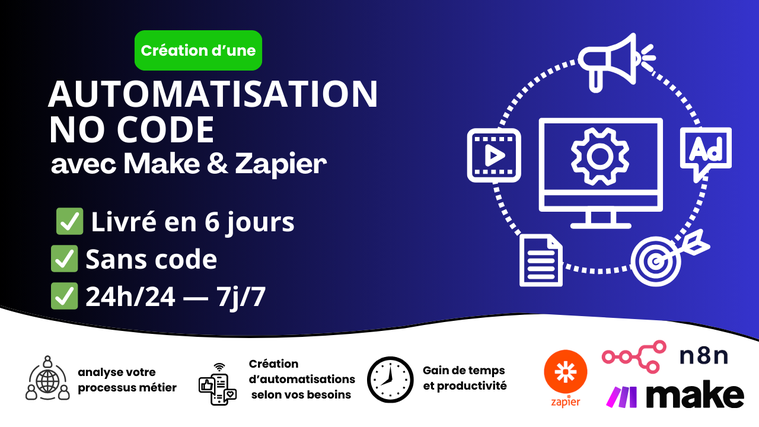Je vais automatiser vos tâches et workflows répétitives avec automation no code, make et zapier