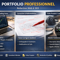 Proposé par Momo09 •1. Je rédige et corrige vos textes en français ✅ simple et clair 2. Rédaction SEO & correction prof Vente au total 0