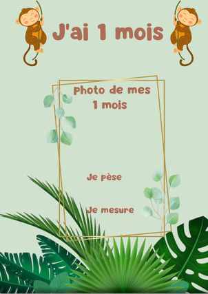 Design mignon sur le thème Jungle , parfait pour les photos mensuelles et pour créer un souvenir unique de 0 à 12 mois.
