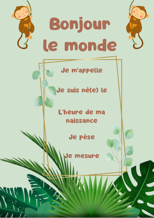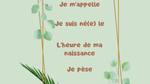 Des espaces pour écrire : nom, poids, taille, heure de naissance