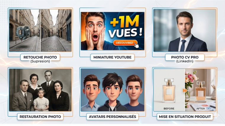 OU 1 création premium au choix (1 miniature YouTube, 1 portrait CV pro, ou 1 restauration photo).
