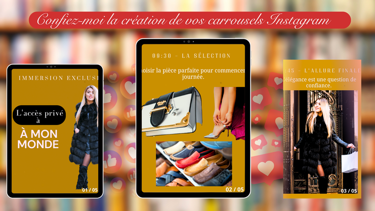 Carrousels instagramm Stratégiques : Conception de carrousels Instagram pensés pour booster l'engagement et le temps passé sur vos publications.