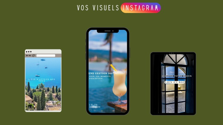 8 Stories Instagram : Un ensemble de visuels verticaux sur mesure pour maintenir un lien constant et esthétique avec votre communauté.