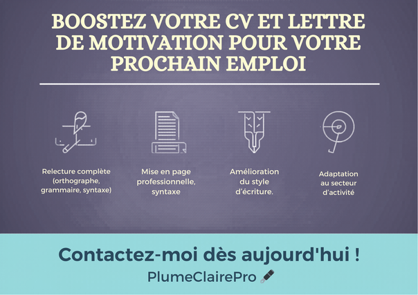 Je veille également à repérer les formulations maladroites afin d’améliorer la lisibilité et la fluidité de votre texte tout en respectant votre style et le contenu de votre candidature.