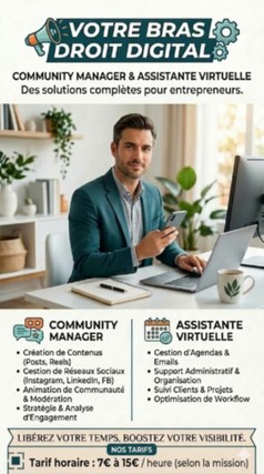 💻📱 Marcel – Gestion des réseaux sociaux & support digital Je suis Marcel, spécialisé en community management et en assistance virtuelle. Je vous aide à gérer votre présence en ligne et à offrir un support professionnel à vos clients, tout en assurant une gestion fluide de vos tâches administratives. 📱 Community Management 📅 Planification et publication de contenu 💬 Réponses aux messages et modération 📊 Suivi de l’engagement et des interactions 🧑💼 Assistance Virtuelle 📧 Gestion d’emails et support administratif 🗂️ Organisation et gestion des tâches 📑 Aide dans la gestion quotidienne de vos opérations 💰 Tarif 👉 10 € la prestation de base ✅ Pourquoi me choisir ? ✔️ Polyvalent et organisé ✔️ Communicatif et réactif ✔️ Respect des délais et des consignes ✔️ Communication claire et efficace 📩 Contactez-moi pour un support digital et community management de qualité.