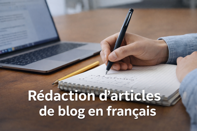 Je propose la rédaction de textes en français pour vos différents besoins : articles de blog, publications pour réseau sociaux, description de produits, messages professionnels.