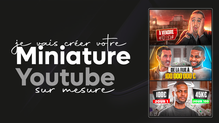** Miniature Ultra : Envoyez moi simplement votre vidéo finalisée ou votre script et je m'occupe de tout. Je reviendrais vers vous avec une ébauche du concept de la miniature. Une fois l'ébauche validée, on finalise tout ça !**