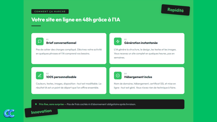 Cette méthode vous permet d'obtenir en quelques jours ce qui prenait auparavant des semaines à concevoir, tout en conservant la qualité et la personnalisation d'un travail soigné. Résultat : un site qui vous ressemble, optimisé pour convertir vos visiteurs en clients, et livré 3 fois plus rapidement qu'une création traditionnelle.