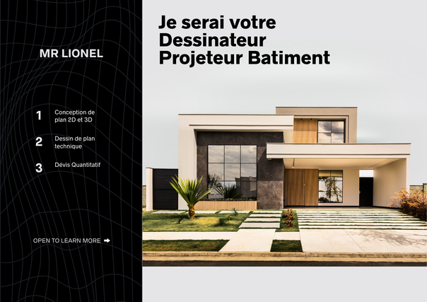 Architecte / Dessinateur-projeteur expérimenté en dessin technique d'architecture 2D et 3D. Je vous accompagne dans vos projets, que ce soit pour : Étude et conception des plans en 2D pour tous projets. Réalisation de vos dossiers de "Permis de Construire" Réalisation de vos dossiers de "Déclaration Préalable" Aménagement et décoration int./ext. en 3D de votre projet. _Je suis Lionel ADINSI, un architecte animé par la passion du design et étroitement avec mes clients, je m'efforce de donner vie à leurs rêves, idées de croquis et de créer des lieux où les gens se sentent vraiment chez eux. Au plaisir de collaborer avec vous !
