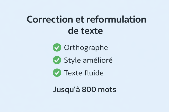 Etudiante en droit, je propose des services de rédaction, correction et reformulation de textes en français. Sérieuse et attentive aux détails, je m'engage à fournir un travail clair, professionnel et bien structuré. Je peux vous aider pour: la correction de texte la reformulation de contenus la rédaction de textes simples Je reste disponible pour répondre à vos besoins rapidement.
