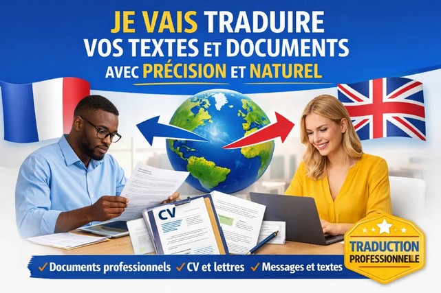 Bilingue français-anglais, je traduis avec précision, naturel et respect total de votre ton et de votre style. Le résultat sonnera comme si le texte avait été écrit directement dans la langue cible — pas comme une traduction.