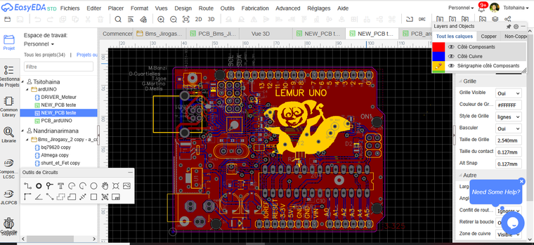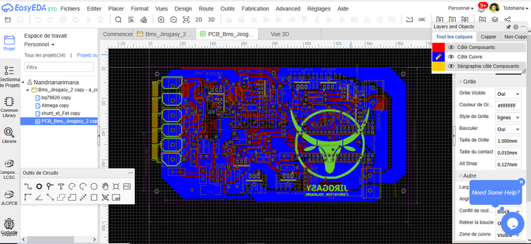 Je vous accompagne dans la conception complète de votre PCB, du schéma aux fichiers prêts pour fabrication, en utilisant KiCad ou EasyEDA.