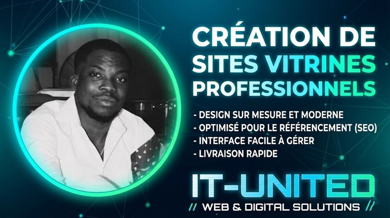 Nous sommes IT-UNITED, une équipe de développeurs web et techniciens IT basés à Abidjan, Côte d'Ivoire. Nous créons des sites web professionnels, modernes et performants pour les entreprises qui veulent une présence digitale sérieuse. Chaque site est conçu sur-mesure, responsive, et livré clé en main avec domaine + hébergement inclus. ✅ Parmi nos réalisations : — SITAEL CI (sitael-ci.net) — site vitrine bâtiment & carrelage — La Général Expertise CI (lageneralexpertise-ci.com) — cabinet d'expertise Ce que vous obtenez avec nous : ✔ Un design moderne propulsé par l'IA ✔ Un site rapide, responsive sur tous les écrans ✔ Une livraison dans les délais convenus ✔ Un accompagnement après livraison Disponibles pour les clients en Côte d'Ivoire, en Afrique et partout dans le monde (remote). N'hésitez pas à nous contacter avant de commander pour discuter de votre projet.