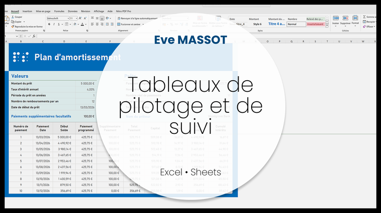 Je vous propose de créer votre tableau de suivi sur Excel ou Google Sheets, avec une structure simple, lisible et adaptée à votre besoin.