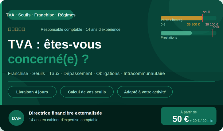 Je vais faire le point sur votre régime de TVA et le calcul de vos seuils