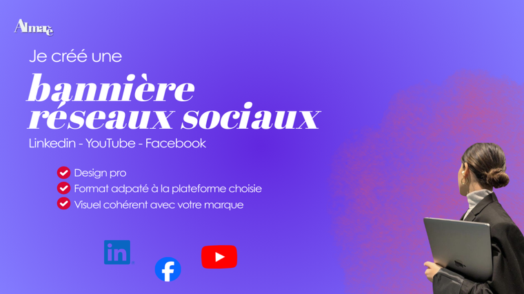 Je réalise un design moderne, clair et adapté à votre activité afin de mettre en valeur votre entreprise, votre contenu ou votre projet. Chaque visuel est personnalisé selon votre identité visuelle, vos couleurs et votre univers afin de créer une bannière cohérente avec votre communication.