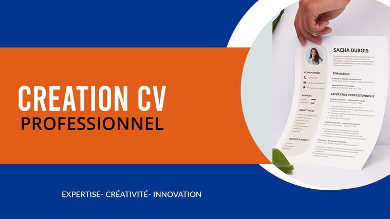 Je vous propose de créer un CV professionnel, moderne et clair, conçu pour capter l’attention des recruteurs et augmenter vos chances d’obtenir un entretien.