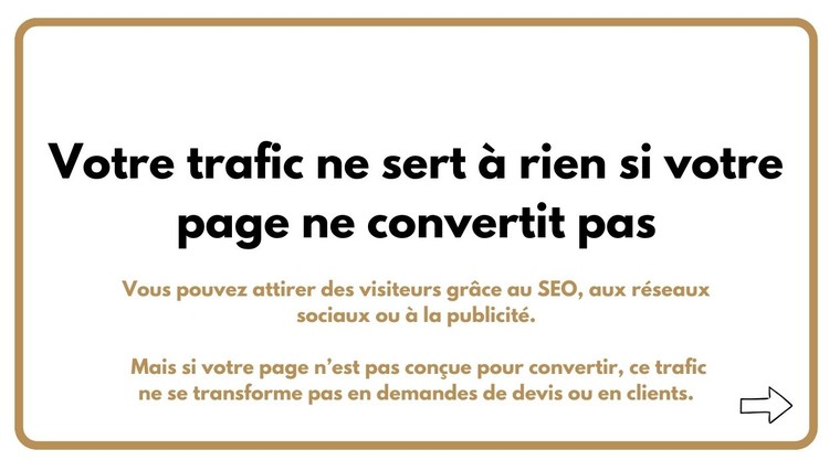 Dans beaucoup de cas, le problème ne vient pas du trafic, mais de votre page d'atterrissage (PAGE D'ACCUEIL DU SITE WEB, LANDING PAGE, TUNNEL DE VENTE) qui ne transforme pas suffisamment les visiteurs en clients.